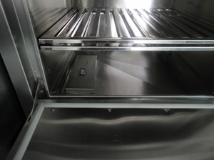 3.蒸柜台体采用1.2毫米厚304不锈钢,在前面有100毫米宽30毫米深集水槽,集水槽下面焊有20毫米直径排水管,每层均设有限气阀;
